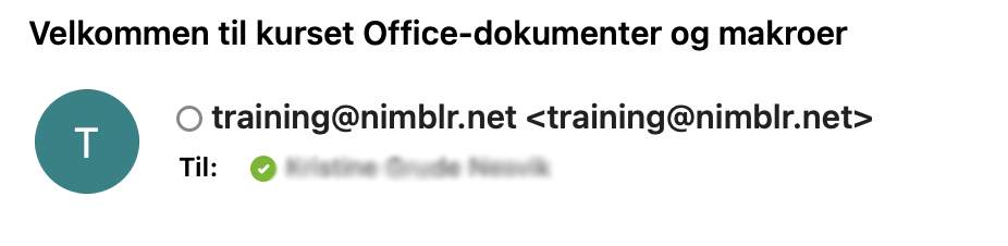 Invitasjon til kursene blir sendt fra e-posten «training@nimblr.net». De kan for eksempel se slik ut: