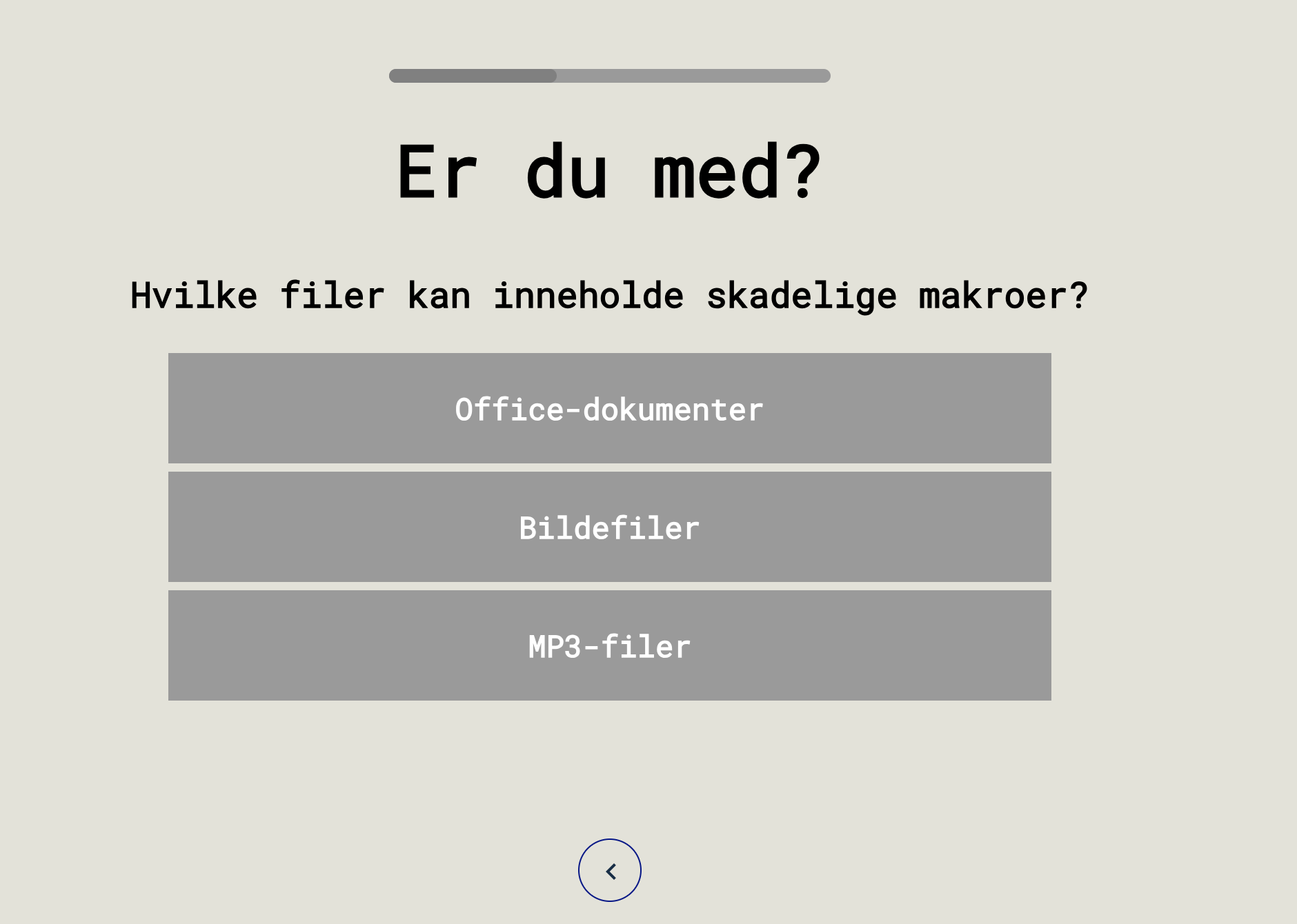 Underveis får du kjappe fakta samt quizer som gjør sikkerhetstreningen lærerik og, faktisk, underholdene: