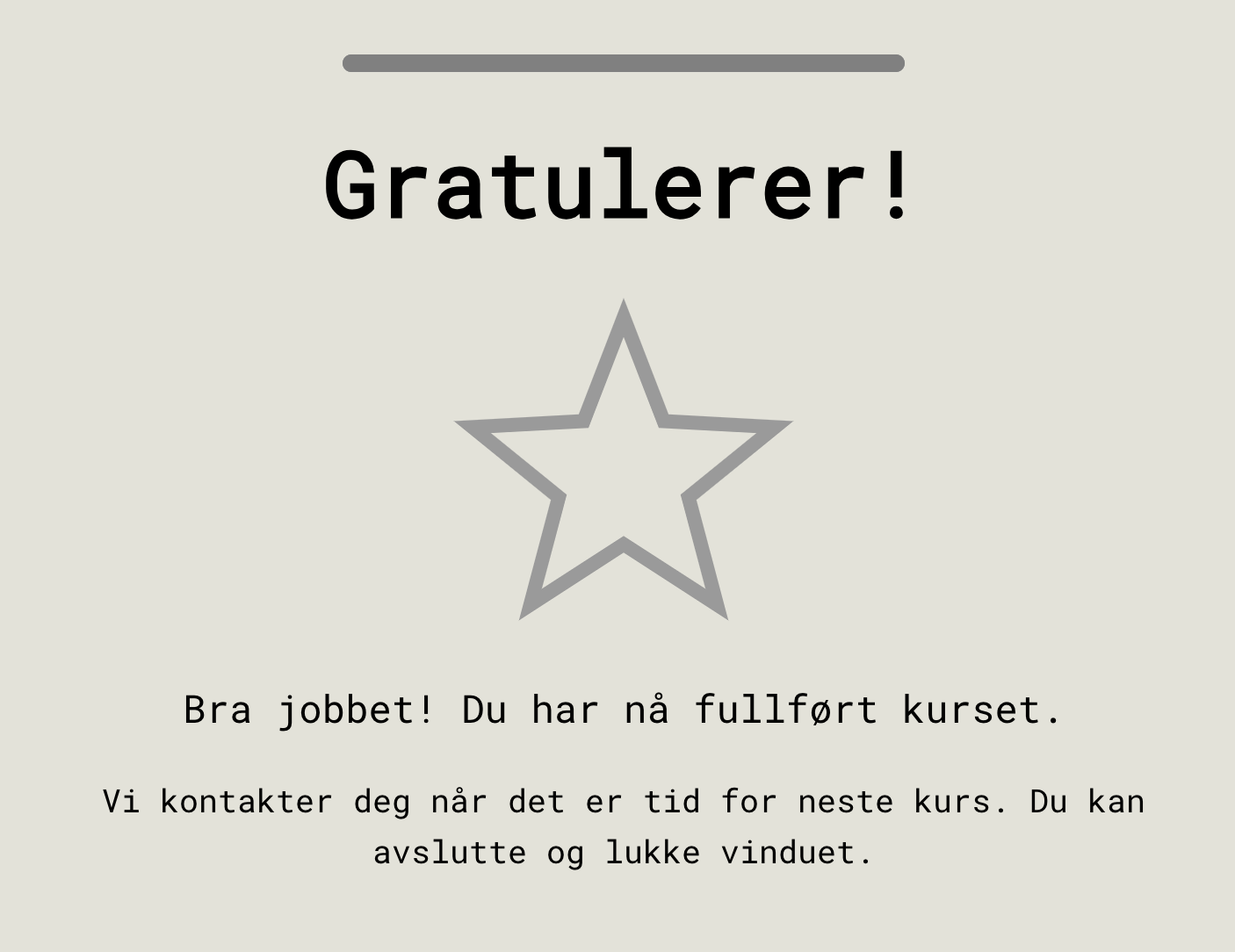 Hvert kurs tar ca. 3-6 minutter å gjennomføre.