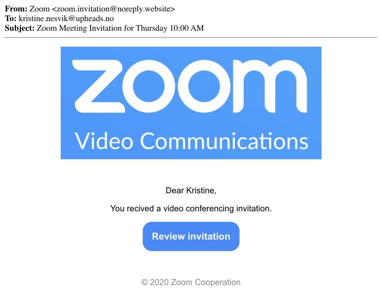 Bilde: Skjermbilde fra e-post for årvåkenhetstrening