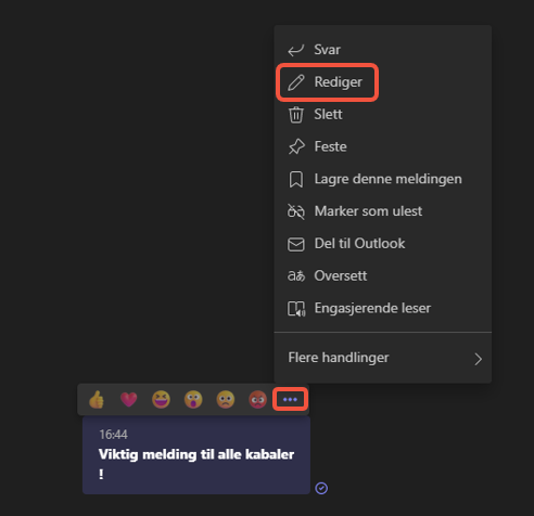 Dersom du i etterkant oppdager skrivefeil kan du likevel redigere meldingen etter du har publisert – og den endres i alle kanaler! Så for å redde deg inn går du til ditt originale innlegg og klikker du på de tre prikkene over originalteksten din og trykker rediger :