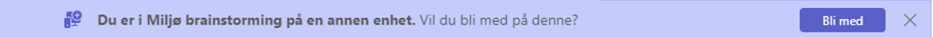 2. Her vil du se et varsel hvor det står at du allerede er i et møte på en annen enhet. Trykk knappen hvor det står «Bli med»: