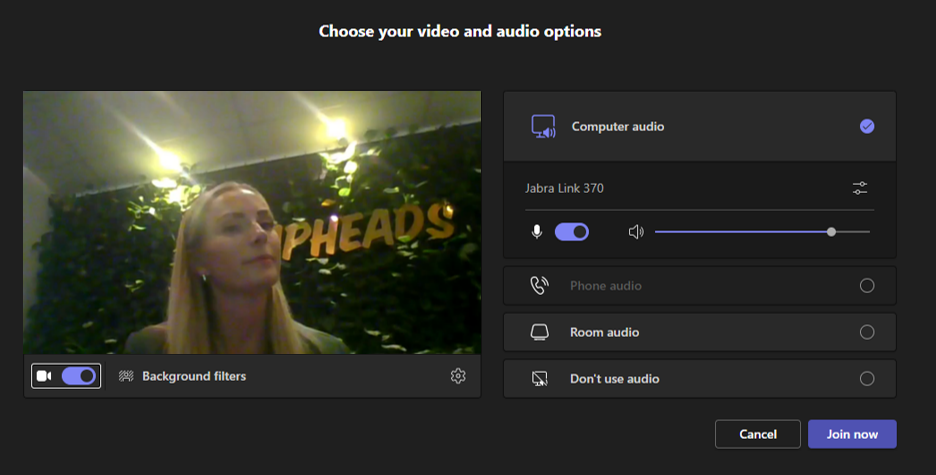 4. Før du blir med kan du også sjekke lyd- og videoinnstillinger på den nye enheten: