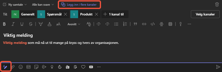 1. Gå til en av kanalene du ønsker å publisere i og start en ny samtale og trykk på format :